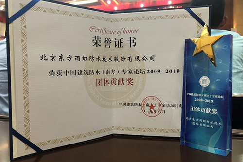 6月29日,2019年第六屆中國建筑防水(南方)專家論壇在湖北工業(yè)大學召開。本次論壇由中國建筑防水協(xié)會、深圳市防水行業(yè)協(xié)會、湖北工業(yè)大學等聯(lián)合主辦,東方雨虹作為協(xié)辦單位受邀出席,并獲得由組委會頒發(fā)的“中國建筑防水(南方)專家論壇2009-2019團體貢獻獎”。同時,東方雨虹董事長李衛(wèi)國先生榮獲湖北工業(yè)大學防水材料與工程學科建設與咨詢委員會頒發(fā)的“防水材料與工程”學科專業(yè)貢獻獎。