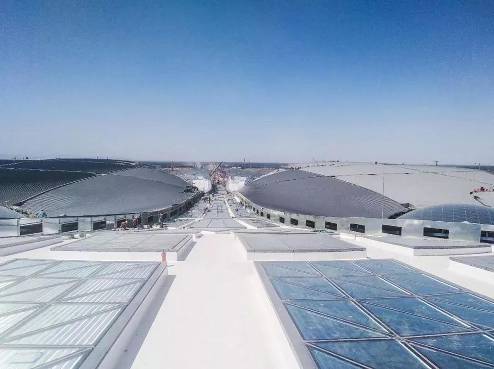 據(jù)悉,東方雨虹的產(chǎn)品及服務(wù)廣泛被應(yīng)用于北京新機場的航站區(qū)“五指廊”、綜合服務(wù)樓及停車樓到飛行區(qū)、生活區(qū)的市政項目中。針對不同部位,東方雨虹采用定制化產(chǎn)品,航站樓主樓、指廊、停車樓屋面均采用增強型TPO高分子卷材;地下室底板、外墻頂板以及樁頭接縫位置采用SBS改性瀝青防水卷材;機庫地下采用預(yù)鋪反粘型TPO高分子卷材、自粘型TPO高分子卷材;地下管廊采用非固化+SBS改性瀝青防水卷材;樁頭、基坑、雨水池等重要防水部位應(yīng)用的則是水泥基滲透結(jié)晶防水涂膜,最大程度地發(fā)揮產(chǎn)品優(yōu)勢。